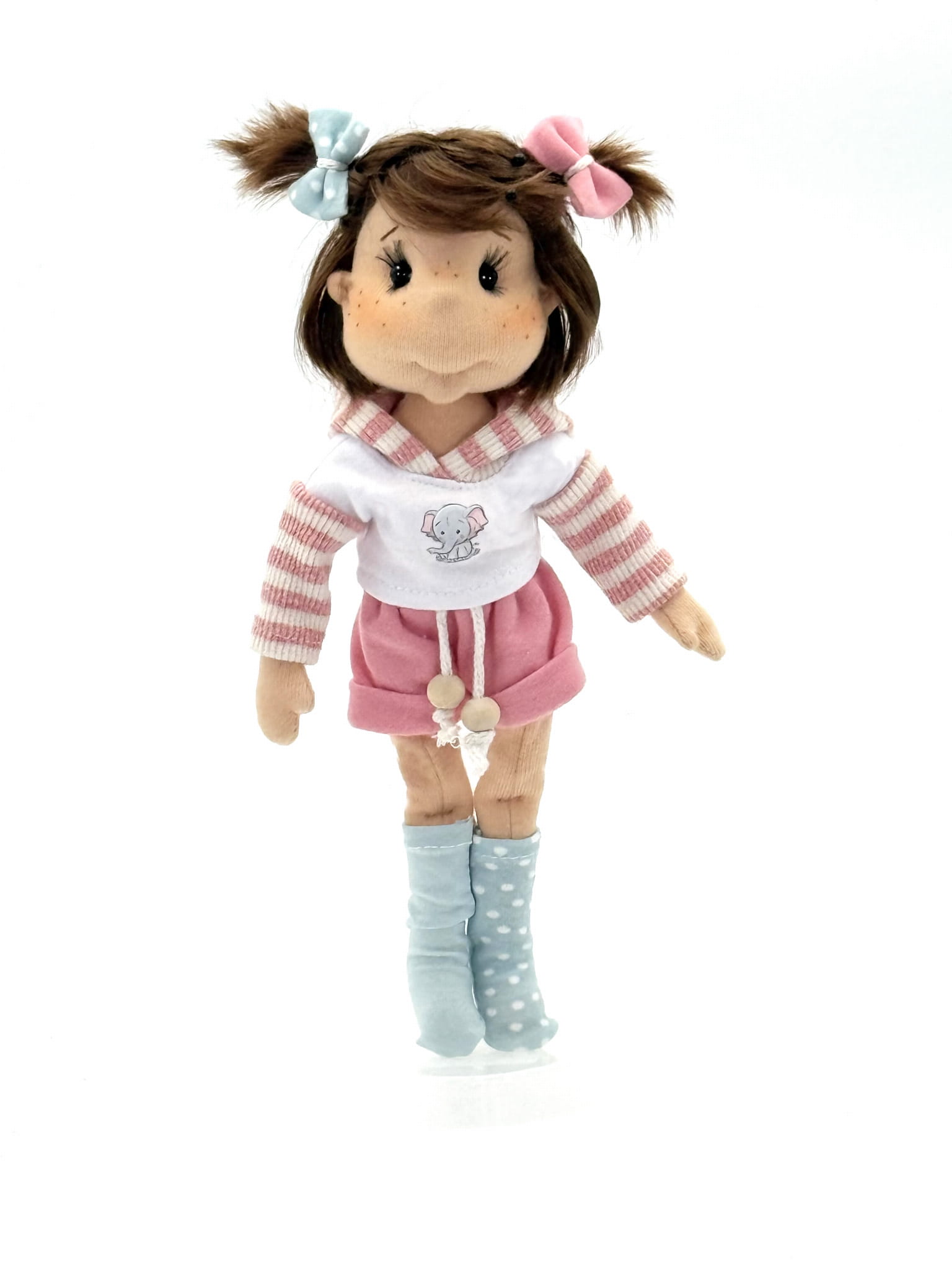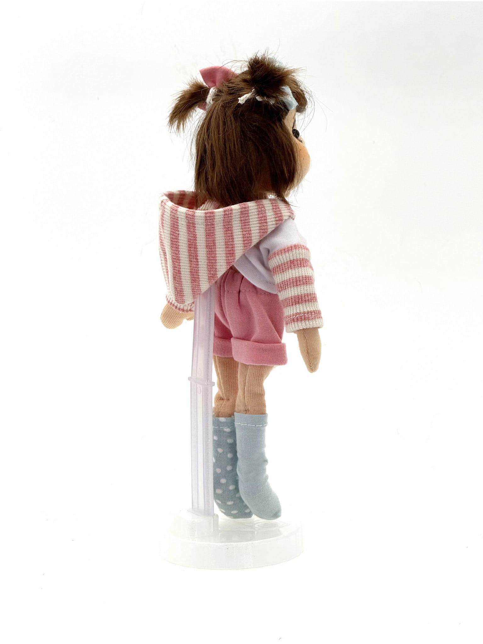 - Die Puppe kann nicht von selbst stehen (die Fotos wurden mithilfe eines Puppenständers gemacht).
