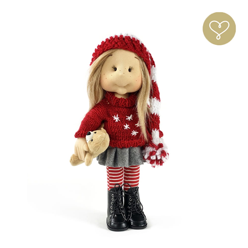 - Ein Baumwolltrikot, das speziell für das Nähen von Puppen entwickelt wurde und von einem Schweizer Unternehmen mit 120 Jahren Erfahrung auf dem Textilmarkt hergestellt wird.